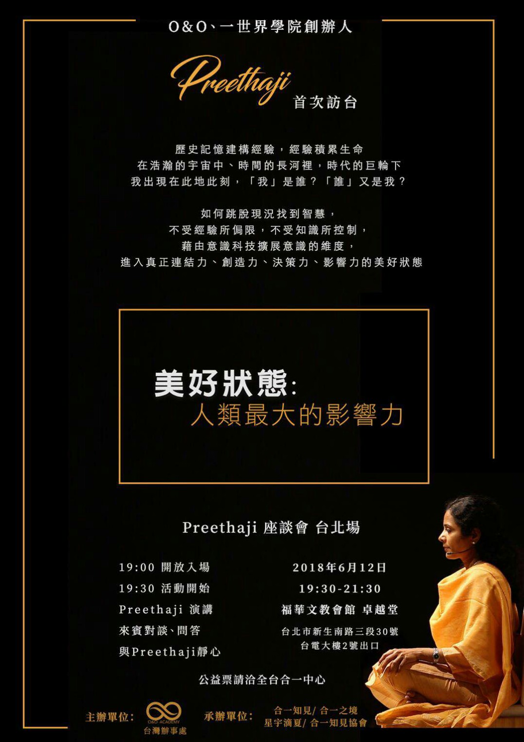 6/12將舉辦Preethaji來台公益講座,現場並邀請藝人李詠嫻來進行對談,邀請大家一起來回到無壓力的美好狀態。