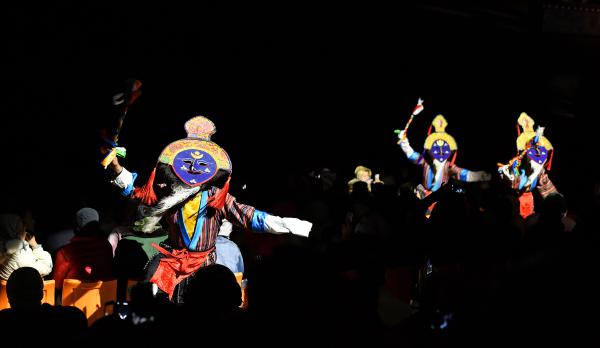 4月20日,演員在觀眾席表演藏戲。當晚,大型實景劇《文成公主》第七季在拉薩市次角林上演,自2013年首演以來,這部劇演出已突破1000場,接待觀眾210萬餘人次,累計收入7.7億元。《文成公主》由域上和美集團推出,講述了1300年前文成公主與松贊干布和親的歷史故事。全劇分為五幕,時長約90分鐘,採用三維仿真布景,劇場可同時容納4000多人觀看錶演。2018年,《文成公主》演出187場,接待遊客50萬人次,票房收入超過1.5億元,帶動了當地大批農牧民就業。新華社記者李鑫攝影報道