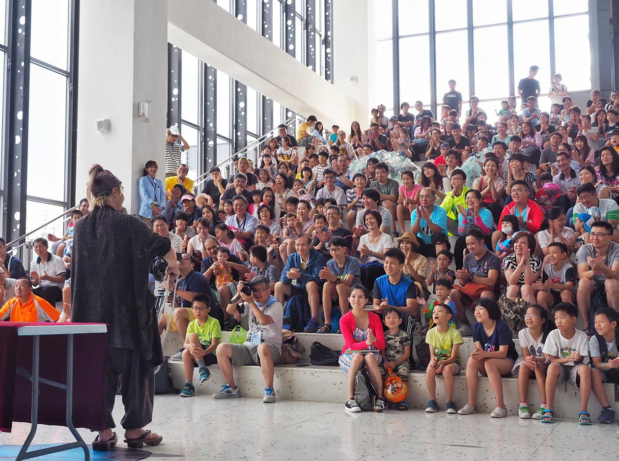 阿凡達奇幻魔術秀吸引了爆滿人潮,將海科館科學廳前階梯教室擠的水洩不通,魔術師阿凡達生動幽默的表演風格,成功的把眾人目光緊緊鎖住,神乎其技的手法讓大家看的目不轉睛,好多小朋友想找出破綻,但就是沒有人搞得清楚魔術師的把戲,阿凡達也邀請了大人與小孩依序上台互動表演,更加深了魔術的精采度,精采程度在表演結束後每個人都爭相與魔術師合影就可見一斑。